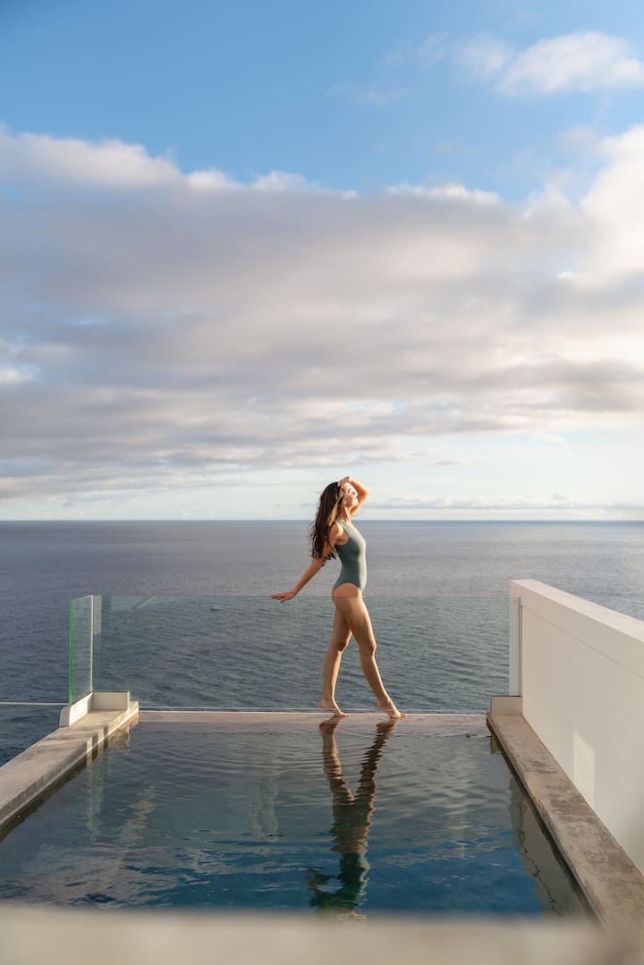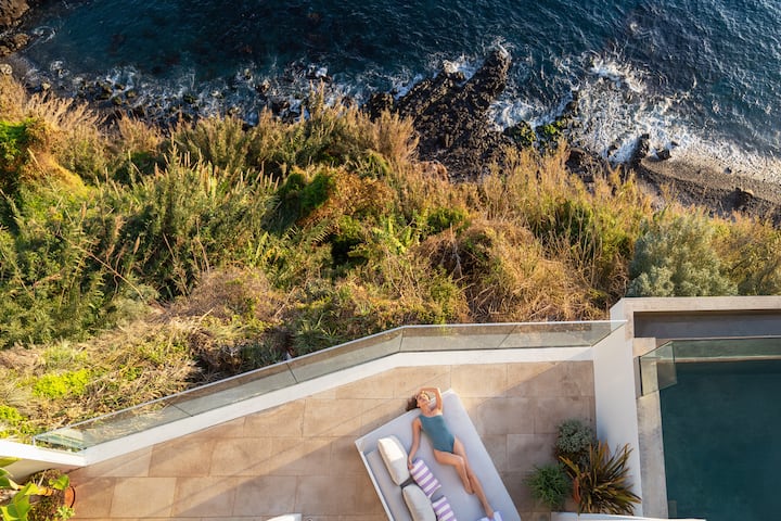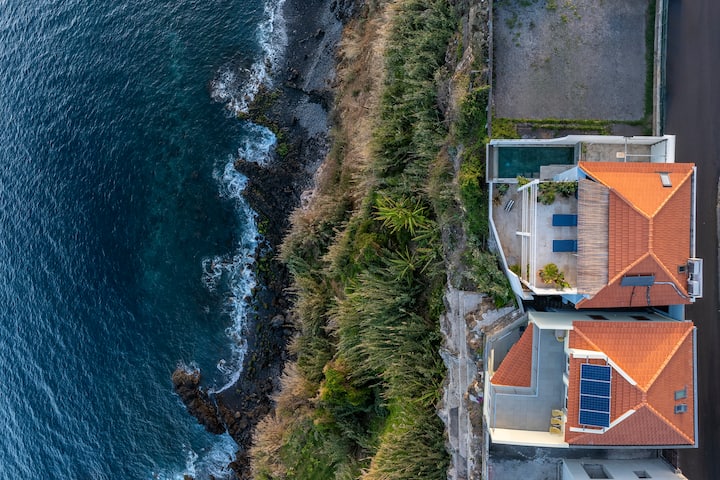 É como estar no campo como é tão privado e cercado pela natureza, mas a Casa Mar fica no centro da cidade com o luxo de uma garagem privada para estacionar o seu carro – Três grandes terraços bem no topo do mar oferecem vistas deslumbrantes do Funchal, vistas ilimitadas para o mar e abaixo da casa um penhasco marinho natural. Tranquilo e privado com o clima mais quente da Madeira. Esta é uma base muito conveniente para explorar o resto da ilha e as suas caminhadas com ligações de fácil acesso.