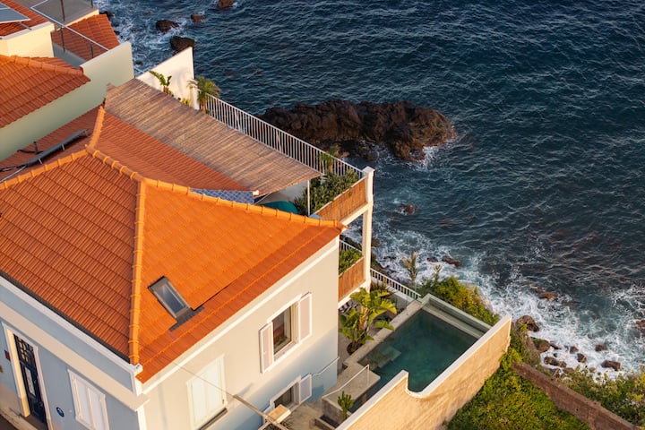 Casa à beira-mar com piscina privada na melhor localização da Madeira, a cidade velha do Funchal. A poucos minutos a pé de restaurantes, mercado e praias. A Casa Mar tem 3 terraços com vista ilimitada para o mar e um clima quente durante todo o ano. Uma casa moderna com muito espaço exterior para relaxar, internet rápida, ar condicionado e estacionamento no local. Uma excelente base para caminhadas e ver a autêntica Madeira. Renovada recentemente com interiores elegantes. Acomoda 6 pessoas com 3 quartos, 3 casas de banho, cozinha e janelas do chão ao teto com belas vistas para o porto do Funchal