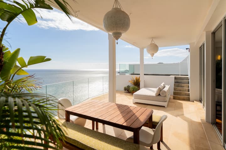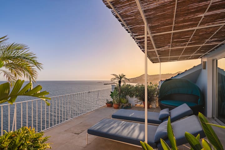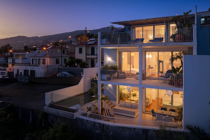 Uma espaçosa e moderna casa de 3 quartos com terraços à beira-mar numa localização na cidade do Funchal. Ótima internet por toda parte. A base perfeita para relaxar, desfrutar do sol e dos espaços exteriores.