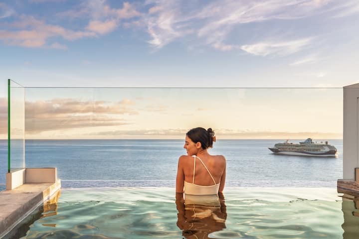 Localização incrível mesmo no oceano, abaixo do mar e de uma plantação de bananas – mas no coração da cidade velha do Funchal, onde todos os melhores cafés, praias, restaurantes e atrações divertidas podem ser encontrados a poucos minutos a pé.