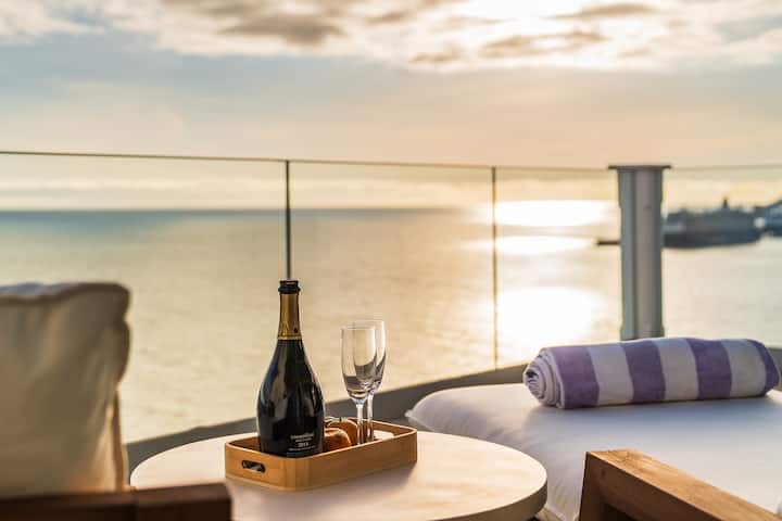 Os quartos têm janelas de comprimento total e terraço à beira-mar (um com casa de banho privativa); decoração elegante recentemente remodelada.