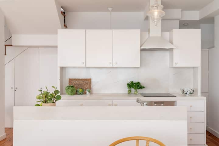 COZINHA – Totalmente equipada para estadias curtas ou longas, incluindo máquina de lavar louça, máquina de café nespresso, forno, chaleira, todos os pratos, talheres, etc. Fora de um churrasco Weber, área de refeições e espaço relaxante