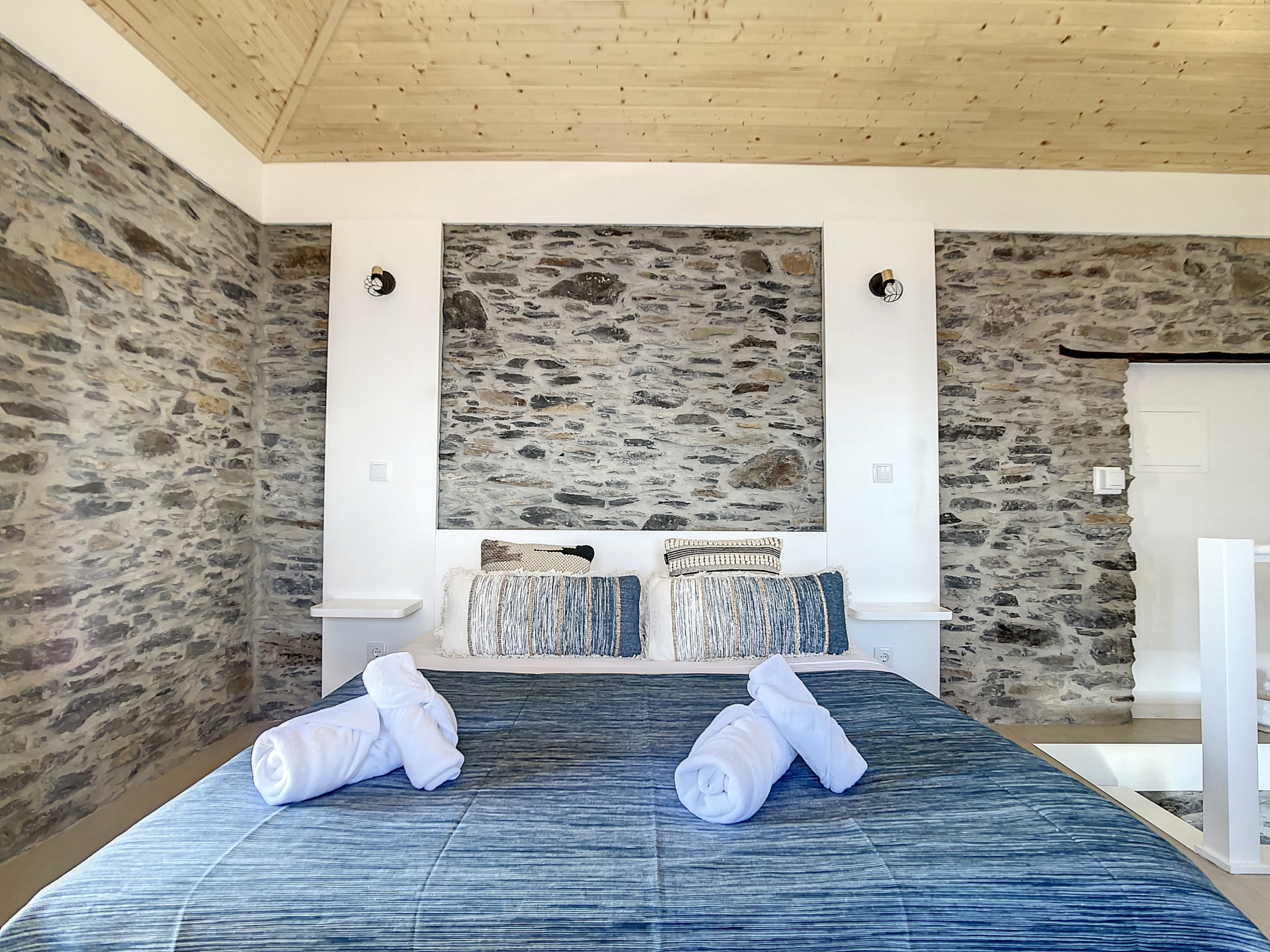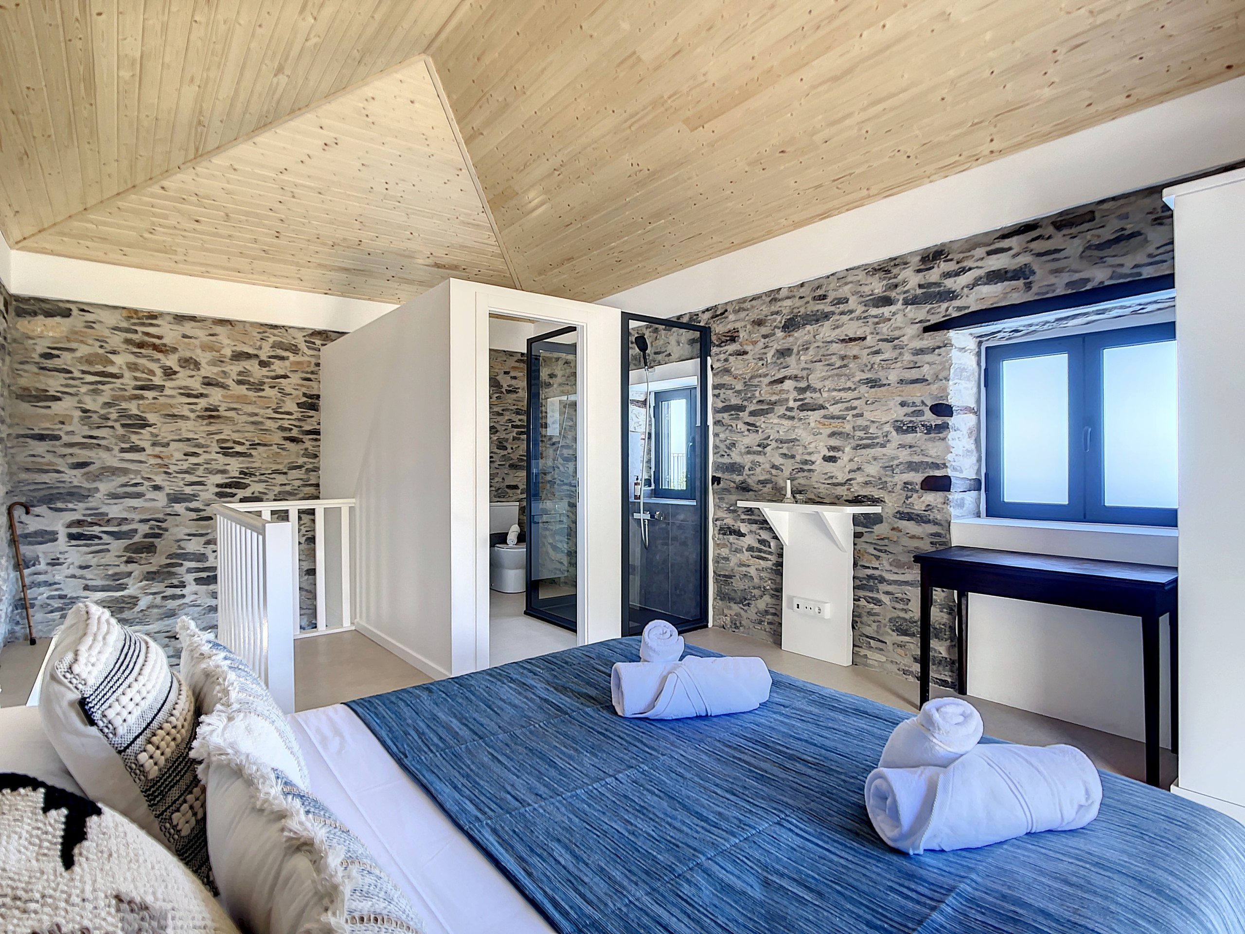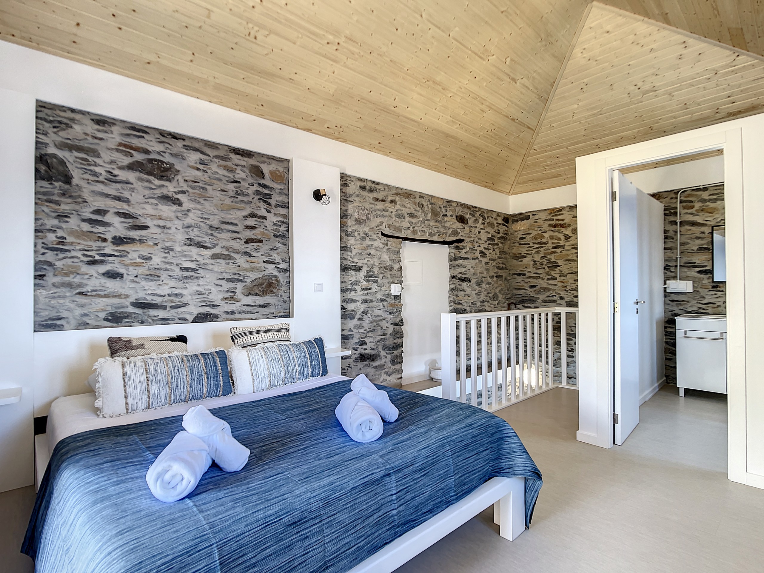 No interior, encontrará duas suítes elegantes, cada uma com uma cama queen-size e casa de banho privativa para total conforto e privacidade. Os interiores luminosos e decorados com bom gosto criam uma atmosfera acolhedora onde se pode sentir imediatamente em casa. A sala de estar oferece um confortável sofá-cama duplo, ideal para relaxar ou receber hóspedes adicionais.
