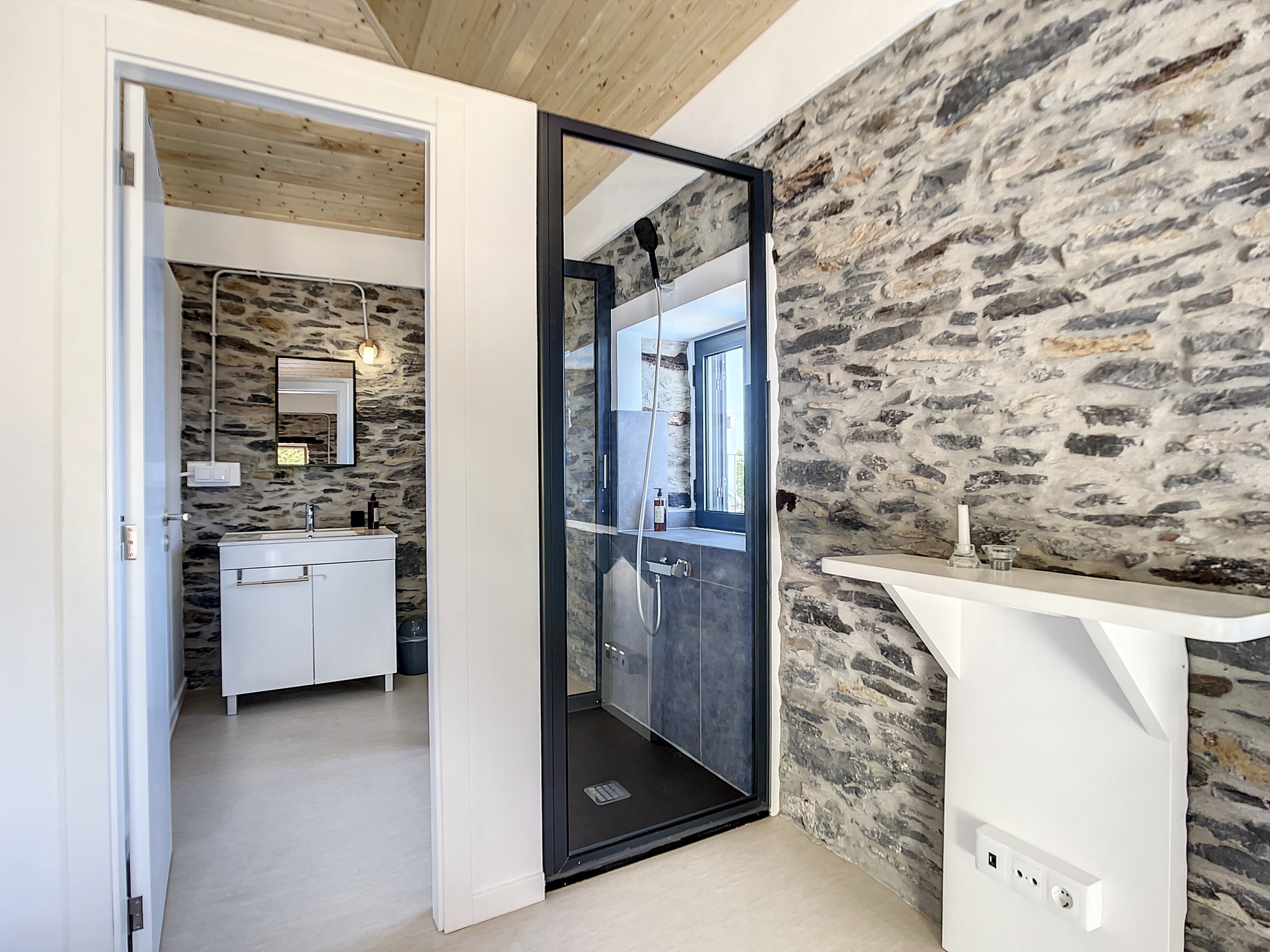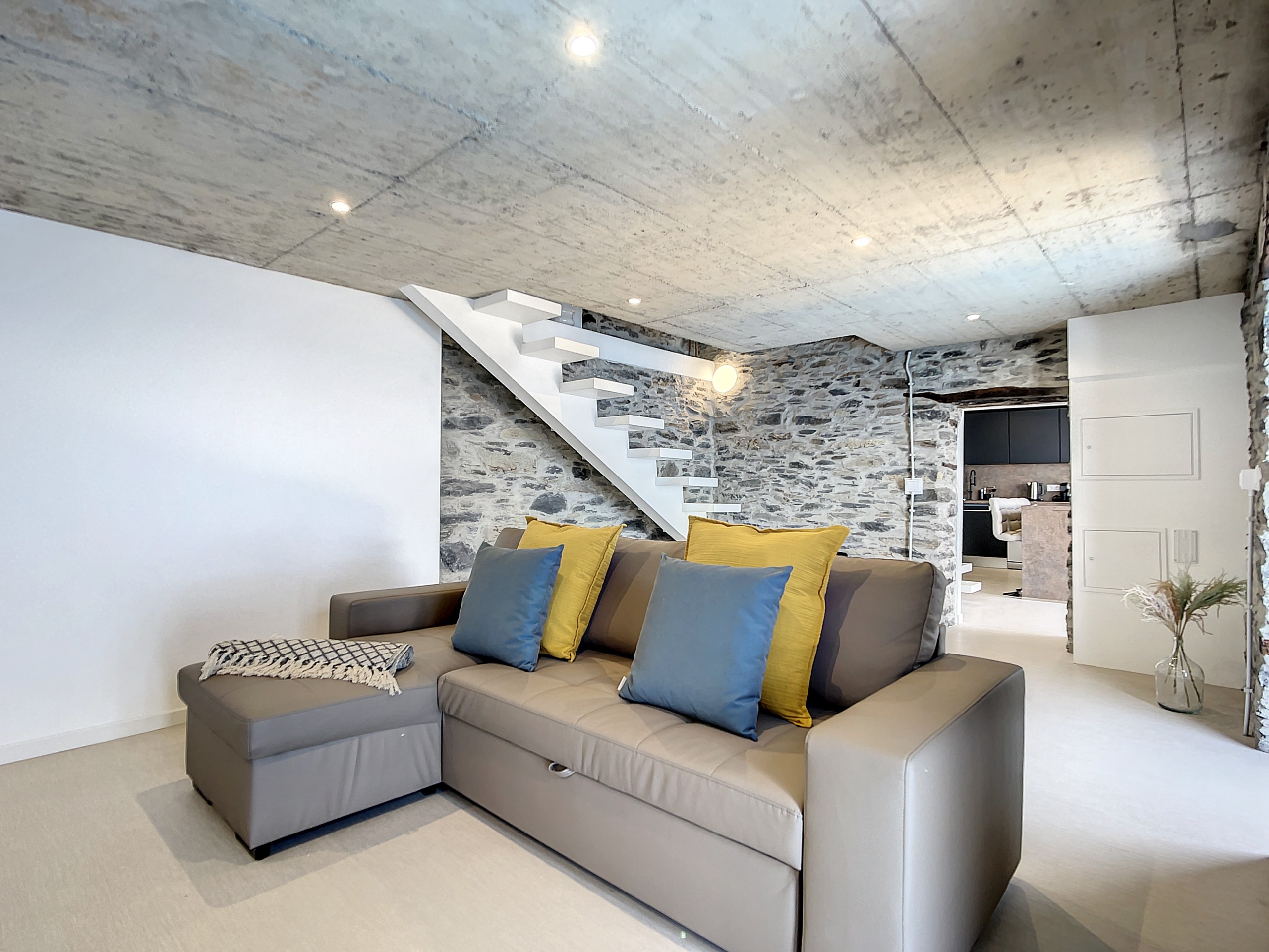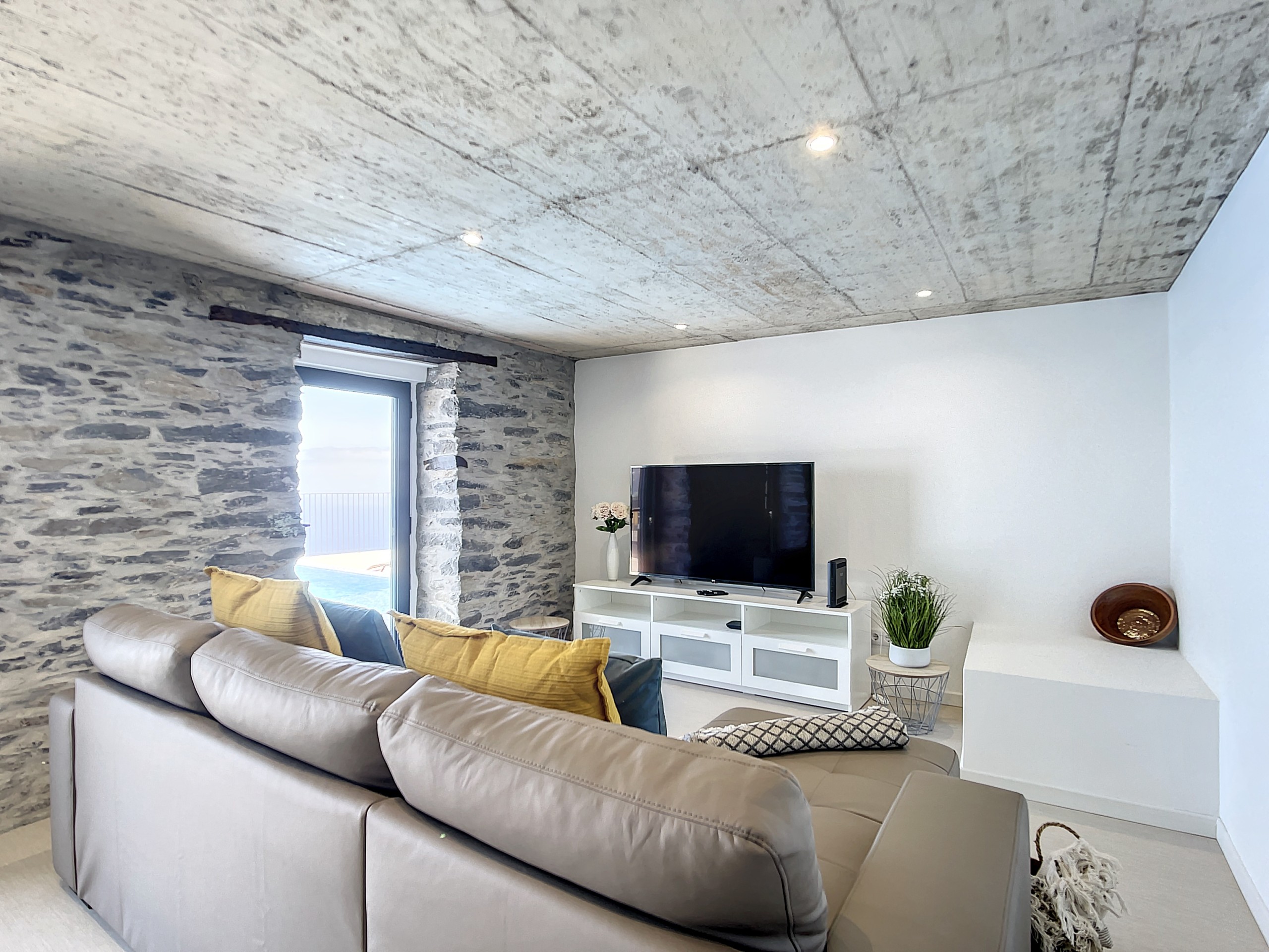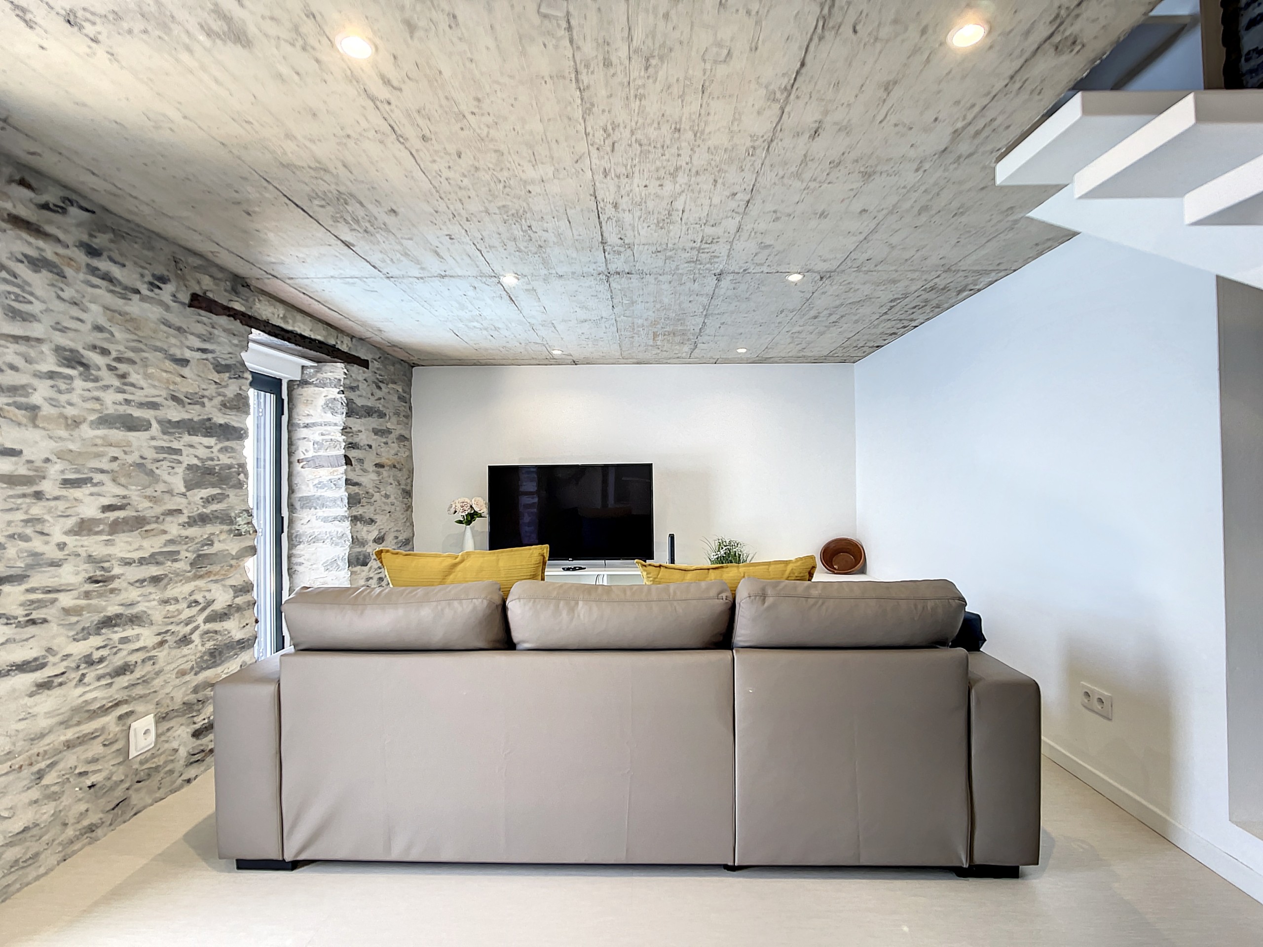 No interior, encontrará duas suítes elegantes, cada uma com uma cama queen-size e casa de banho privativa para total conforto e privacidade. Os interiores luminosos e decorados com bom gosto criam uma atmosfera acolhedora onde se pode sentir imediatamente em casa. A sala de estar oferece um confortável sofá-cama duplo, ideal para relaxar ou receber hóspedes adicionais.