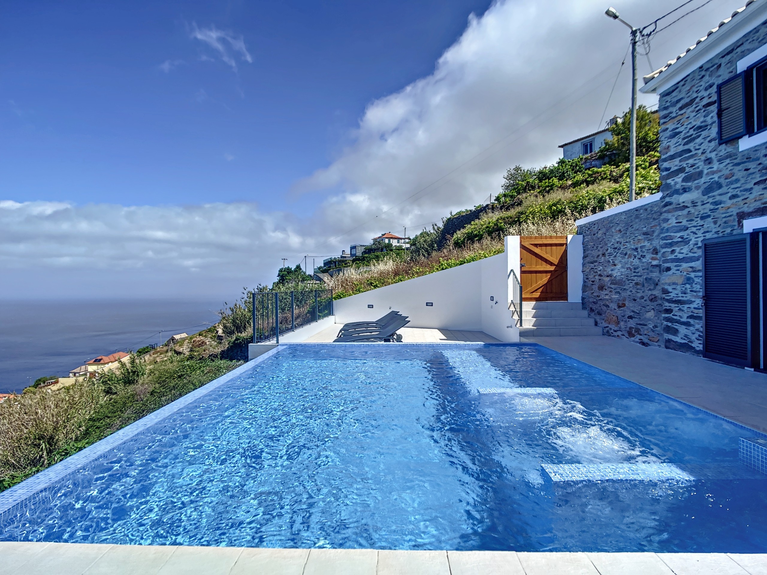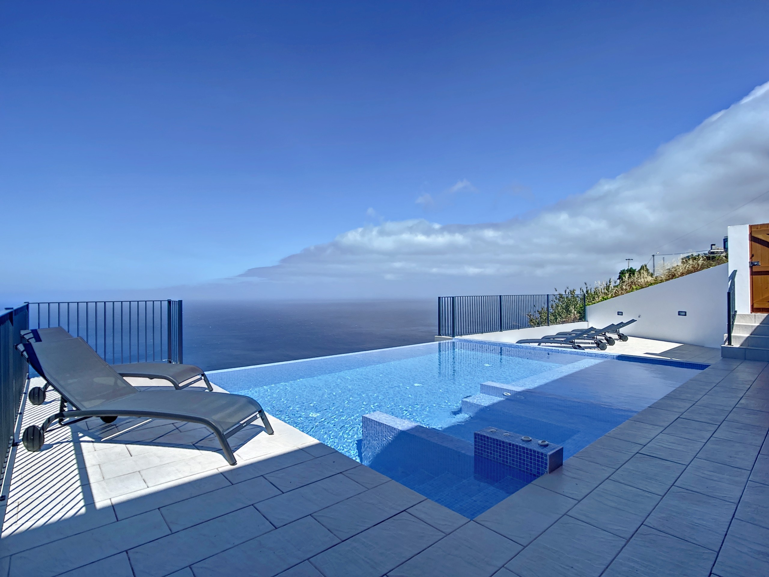 O destaque da villa é a sua piscina aquecida privada, que oferece a melhor experiência de relaxamento. Desfrute de um mergulho relaxante confortavelmente durante todo o ano, ou simplesmente relaxe junto à água enquanto aprecia a paisagem deslumbrante do oceano e da montanha.