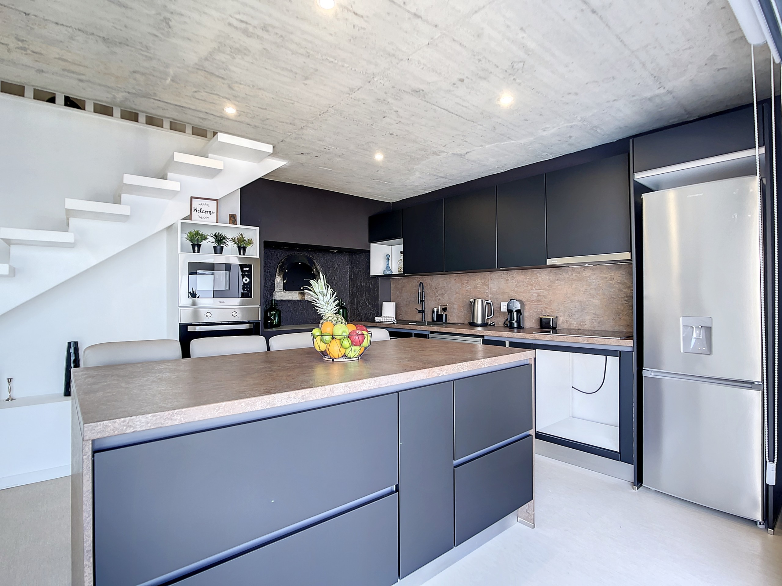 A cozinha de alta qualidade está totalmente equipada com eletrodomésticos modernos, tornando a preparação de refeições um prazer, quer seja um simples pequeno-almoço ou um jantar gourmet. No exterior, desfrute de uma área de churrasco dedicada, perfeita perfeita para jantar ao pôr do sol com vistas panorâmicas.